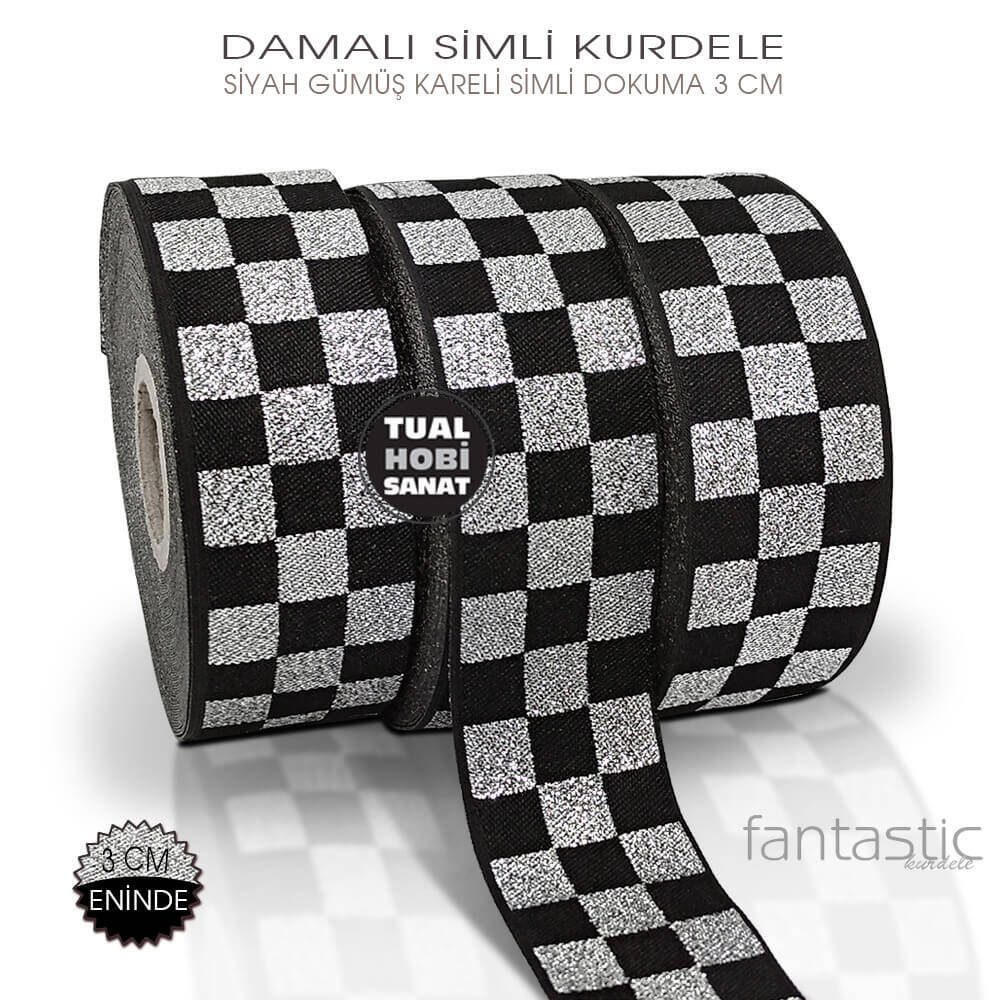 Damalı Simli Siyah Gri Kurdeleler Örgü Yöntemiyle üretilmiş, kalın ve dokulu, üst konsept bir üründür. Dolayısıyla baskılı ince kurdelelerden daha gösterişli, dokulu ve yüksek maliyetlidir. Lütfen bunu göz önüne alarak sipariş veriniz.
