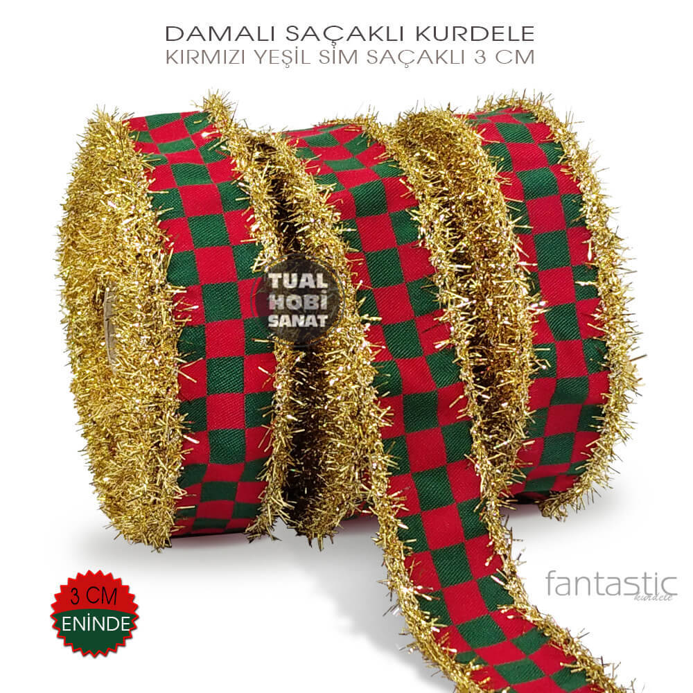 Damalı Saçaklı Kırmızı Yeşil Kurdeleler Örgü Yöntemiyle üretilmiş, kalın ve dokulu, üst konsept bir üründür. Dolayısıyla baskılı ince kurdelelerden daha gösterişli, dokulu ve yüksek maliyetlidir. Lütfen bunu göz önüne alarak sipariş veriniz.