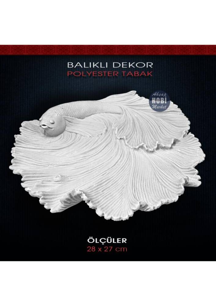 Polyester Dekoratif Balıklı Tabak Yeni Model, 28x27 cm boyutlara, en yüksek noktası, 5 cm yüksekliğe sahip, 3 boyutlu polyester aksesuar objedir.