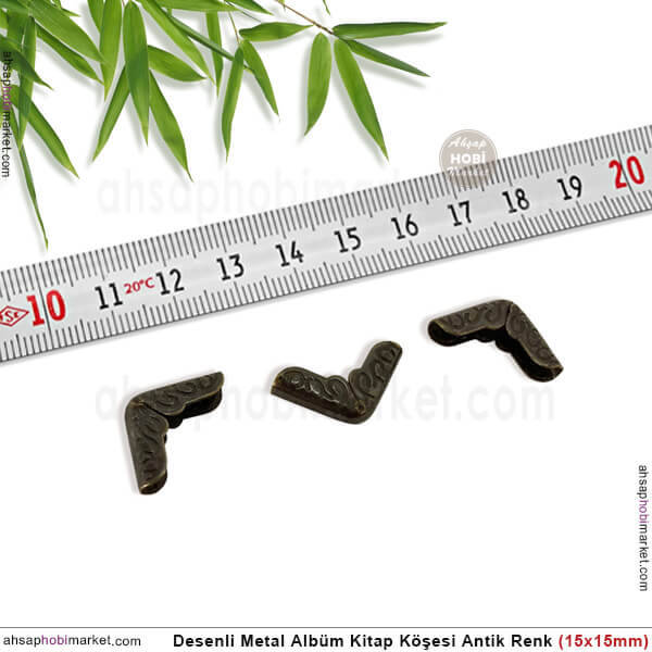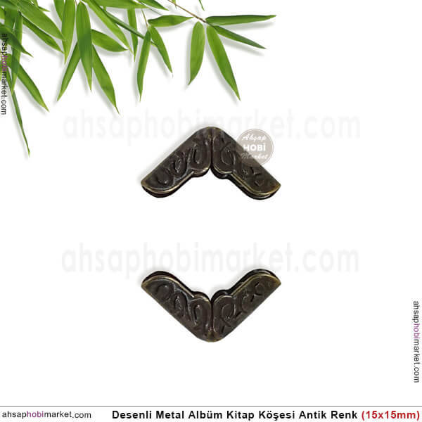 Metal Albüm ve Kitap Köşeleri kaliteli metalden üretilmiş, antik altın eskitme yapılmış olup, 15 mm yüksekliğe, 15 mm genişliğe sahiptir. Kitap kapağının girdiği ara ölçüsü 3-3,5 mm boyutundadır.
