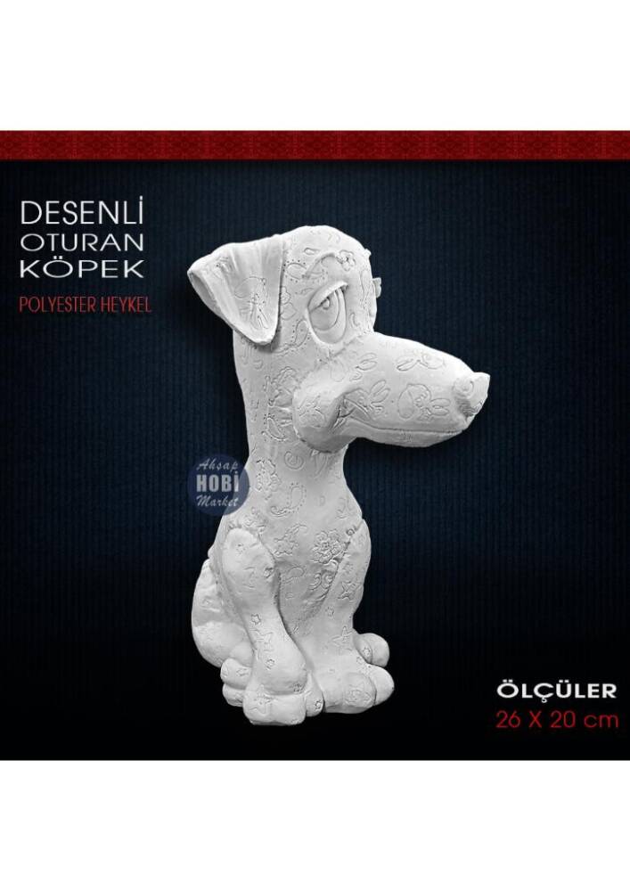 Desenli Oturan Köpek Biblo (26x20 cm) Ham Polyester