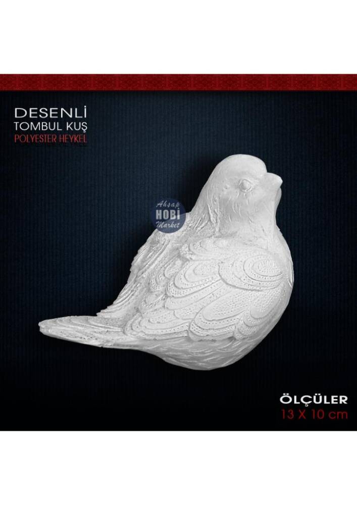 Desenli Tombul Kuş Biblo (13x10 cm) Ham Polyester