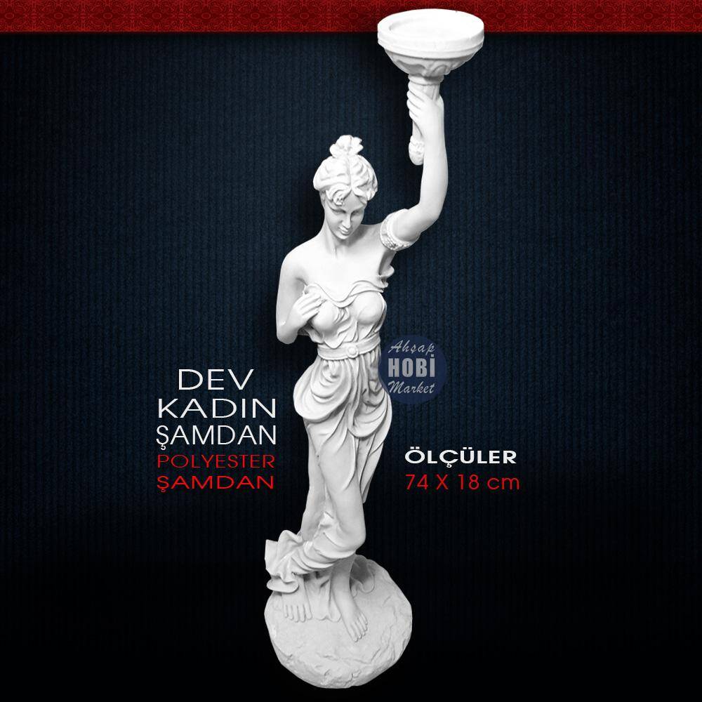 Boyanabilir Polyester Dev Kadın Şamdan, birinci kalite polyesterden, 3 boyutlu olarak özel makinalarda dökülmüş, modern, klasik ve avangart başta olmak üzere her tür dekorasyon trendine uygun olarak boyanabilecek, hatasız, mükemmel detaylı, tok görünümlü büyük polyester şamdan mumluktur. Yılbaşı süslemeleriniz için odak noktası olabilecek gösterişli bir dekoratif objedir.