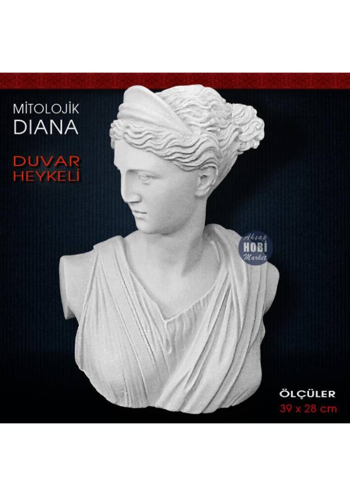 Polyester Diana Büstü Antik Duvar Heykeli, birinci kalite polyesterden, 3 boyutlu olarak özel makinalarda dökülmüş, avangarde ve klasik başta olmak üzere her tür dekorasyon trendine uygun olarak boyanabilecek, hatasız, mükemmel detaylı, duvara asılarak kullanılan, tok görünümlü polyester aksesuar objedir. Taş tozundan veya silikon kalıba dökülerek yapılan objelerden değildir. Ağır ve tok bir görünüme sahiptir.