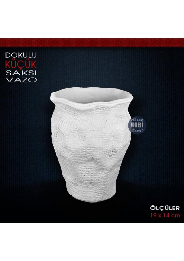 Polyester Dokulu Saksı Vazo Küçük, 19 cm yüksekliğinde, 14 cm genişliğinde, 14 cm derinliğinde üç boyutlu bir aksesuar objedir. Vazo Ağzı 10 cm çapında olup, vazo iç derinliği ise 17 cm ölçüsündedir.