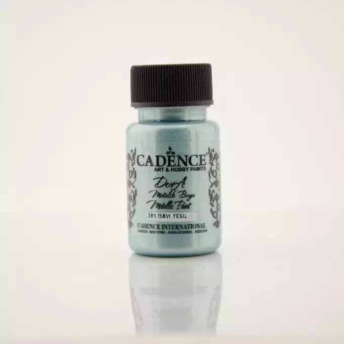 Gelince Haber VerCadence Dora Metalik Mavi Yeşil Rengi Sedefli Boyalar, içerisinde bulunan sedef sayesinde kullanıldığı yüzeylerde metalik görünüm sağlayan, kullanıma hazır, su bazlı, üstün kapatıcılık seviyesine sahip akrilik boyadır. Cadence Dora Serisi boyalar içerisinde sağlığa zararlı toksik maddeler bulundurmayan, her yaşta hobi meraklısının ve profesyonelin güvenle kullanabileceği dekoratif amaçlı su bazlı akrilik boyadır.