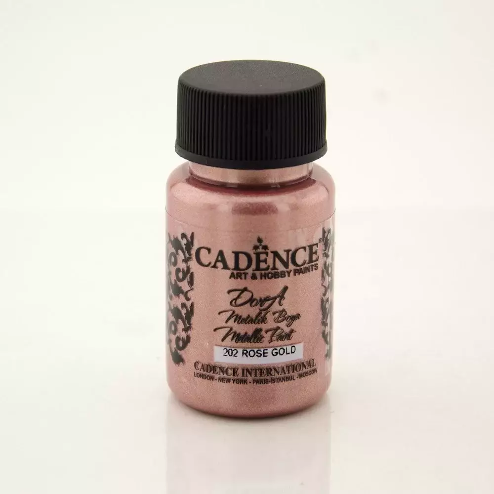 Gelince Haber VerCadence Dora Metalik Rose Gold Rengi Sedefli Boyalar, içerisinde bulunan sedef sayesinde kullanıldığı yüzeylerde metalik görünüm sağlayan, kullanıma hazır, su bazlı, üstün kapatıcılık seviyesine sahip akrilik boyadır. Cadence Dora Serisi boyalar içerisinde sağlığa zararlı toksik maddeler bulundurmayan, her yaşta hobi meraklısının ve profesyonelin güvenle kullanabileceği dekoratif amaçlı su bazlı akrilik boyadır.