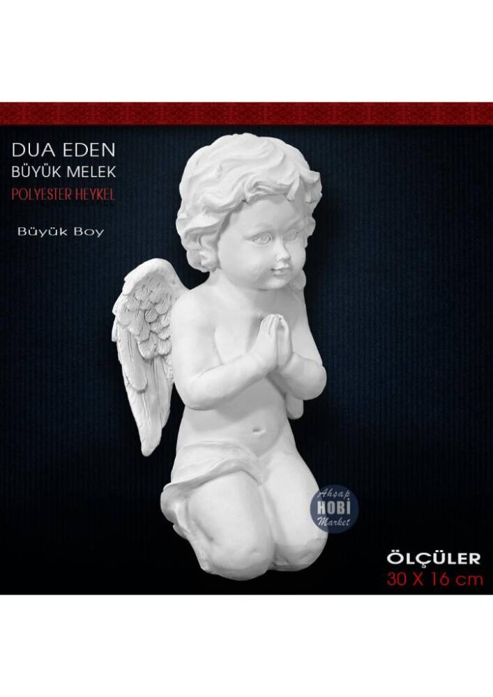 Polyester Dua Eden Büyük Melek Biblo Heykeli, kendinden desen ve detaylı, ahşap ve seramiğe göre daha kolay boyanabilien, English Home, shabby chic, modern klasik, rustik, romantik temalı dekorasyonlarda kullanabileceğiniz, modası geçmeyecek bir dekoratif objedir. Birinci sınıf %100 polyester malzemesiyle dökülmüş, A Kalite işçilikle imal edilmiş, boyamaya hazır, her türlü akrilik ve sentetik boyayla boyanabilen, uzun ömürlü bir dekoratif üründür.