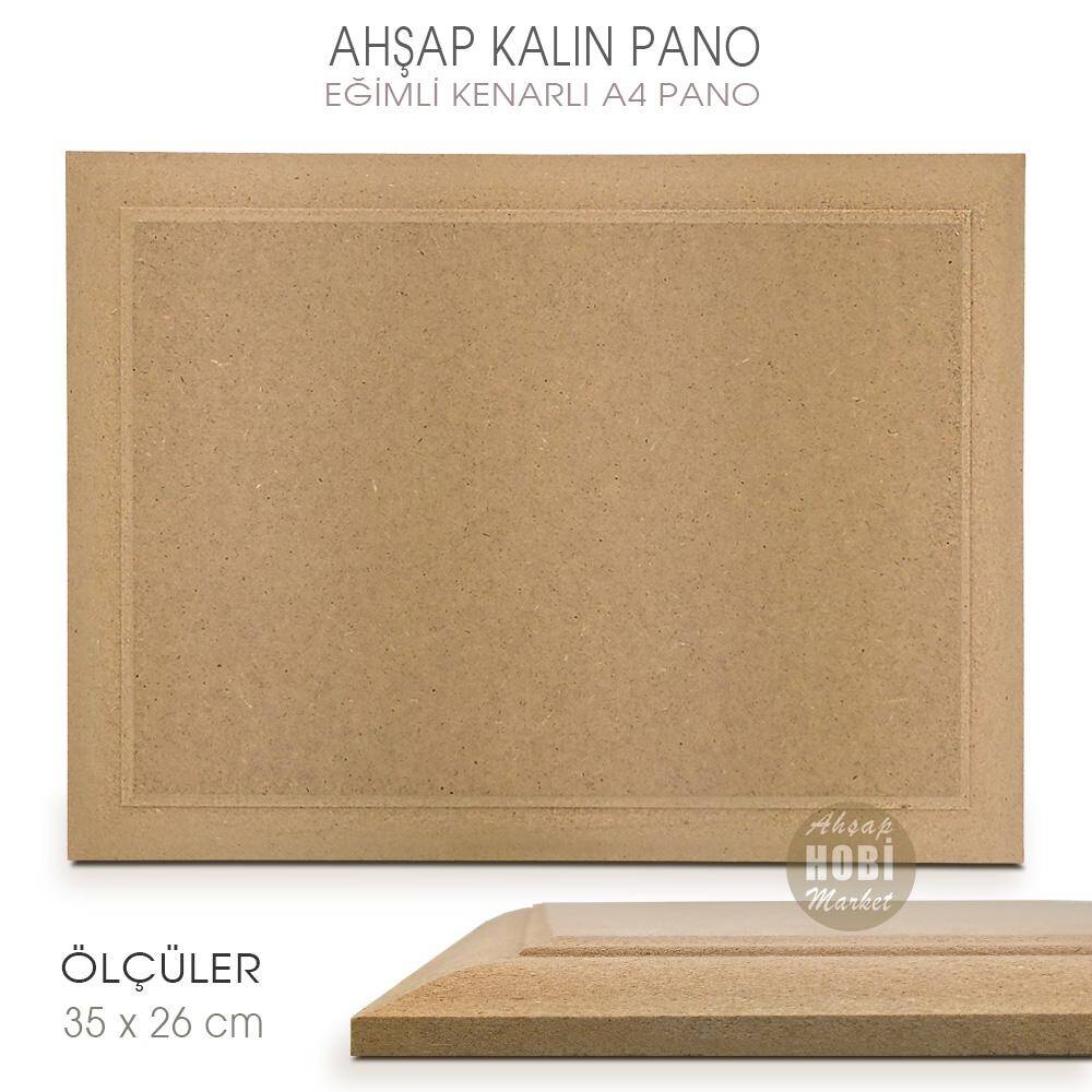 Ahşap eğimli kenarlı A4 pano, özellikle oturma odası, salon, hol, bebek ve genç odası ile home ofis ve cafe dekorasyonunda sıklıkla kullanılmaktadır. Modası geçmeyecek bir tasarımdır. Her türlü eskitme tekniği uygulamaları, dekopaj, kokulu taş rölyef ve stencil uygulamalarında harika sonuçlar vermektedir.