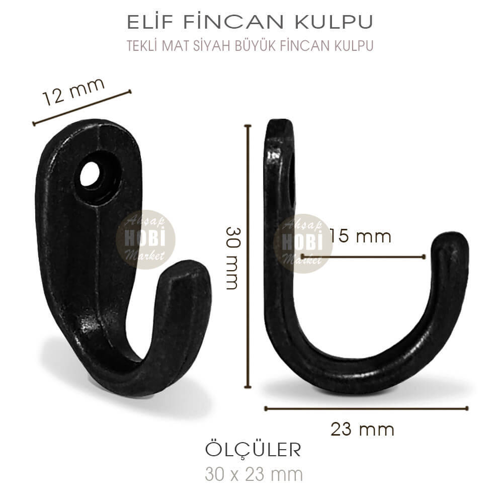 Elif Tekli Fincan Kulbu da denilen, mat siyah büyük boy askılarımız, kaliteli metal üzerine, fiziksel mat siyah eskitme yapılarak üretilmiş, dekoratif ve rustik görünümüyle kullanıldığı yerde fark yaratacak ekonomik bir askı aparatıdır. Birinci sınıf işçiliğe sahip elif tekli kulp askılar hatasız olup piyasada bulunan yanar döner renkli ucuz Çin mallarından değildir. Mat siyah renkli askı aparatları, ürünlerin titizlikle seçildiği ahsaphobimarket.com güvencesiyle tarafınıza gönderilmektedir.