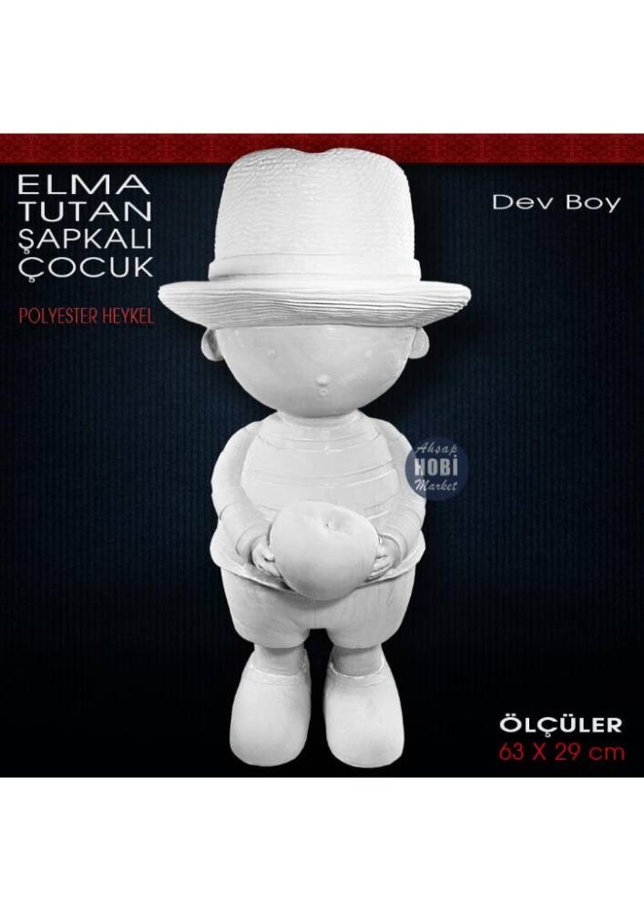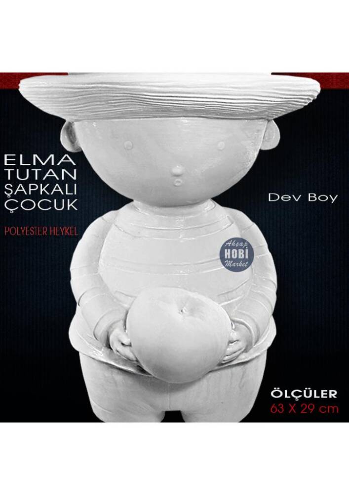 Elma Tutan Şapkalı Çocuk Heykeli Dev Boy (63x29 cm) Ham Polyester