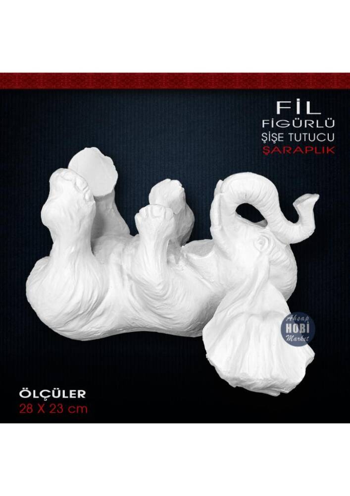 Fil Figürlü Şaraplık Şişe Tutucu (28x23 cm) Ham Polyester