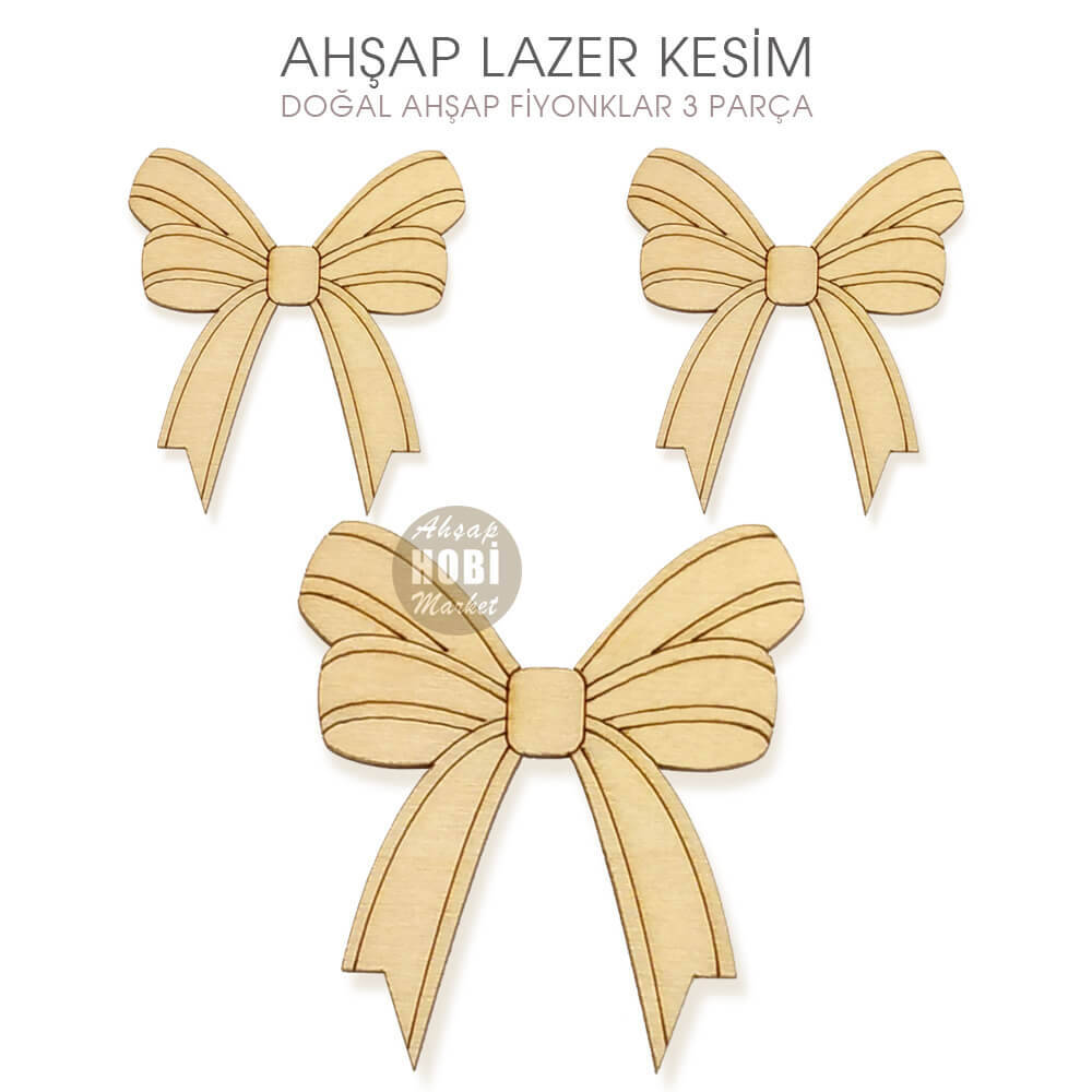 Ahşap Lazer Kesim Fiyonk Figürlü Süsleri, ister boyayarak, isterseniz de naturel halde kullanabilirsiniz. Büyük Fiyonk 6x5,5 cm, küçük fiyonklar ise her biri 4x3,5 cm ölçüsündedir.