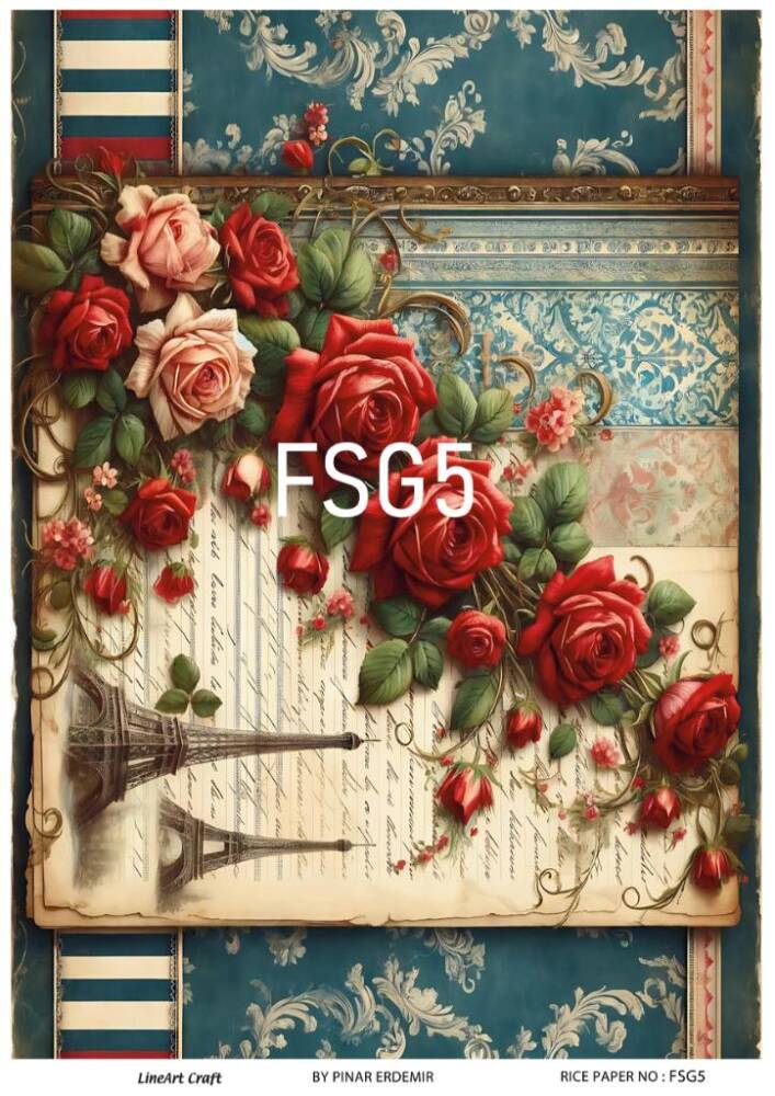 Gelince Haber VerLineArt Fransız Gülü Desenli Pirinç Dekopaj - No :FSG005 Boyut (30x42cm)