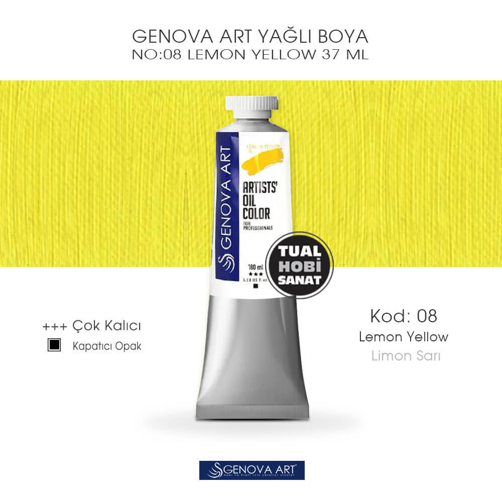 Gelince Haber VerGenova Art Limon Sarısı Renk Yağlı Boyalar, ışığa yüksek dayanıklığı nedeniyle uzun yıllar canlılığını kaybetmeyecek, amatörler kadar profesyonellerinde rahatlıkla kullanacağı, yüksek pigmentli yağlı boyalardır. Genova Art yağlı boyalar, kolay sürülebilen, renklerin rahatlıkla birbiri ile karışabildiği, çabuk kuruyan, yüksek pigmentlere sahip, üst düzey kaliteli bir üründür.