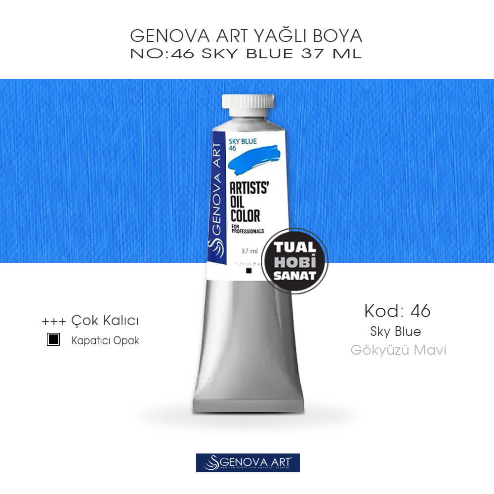 Gelince Haber VerGenova Art Gökyüzü Mavisi Renk Yağlı Boyalar, ışığa yüksek dayanıklığı nedeniyle uzun yıllar canlılığını kaybetmeyecek, amatörler kadar profesyonellerinde rahatlıkla kullanacağı, yüksek pigmentli yağlı boyalardır. Genova Art yağlı boyalar, kolay sürülebilen, renklerin rahatlıkla birbiri ile karışabildiği, çabuk kuruyan, yüksek pigmentlere sahip, üst düzey kaliteli bir üründür.