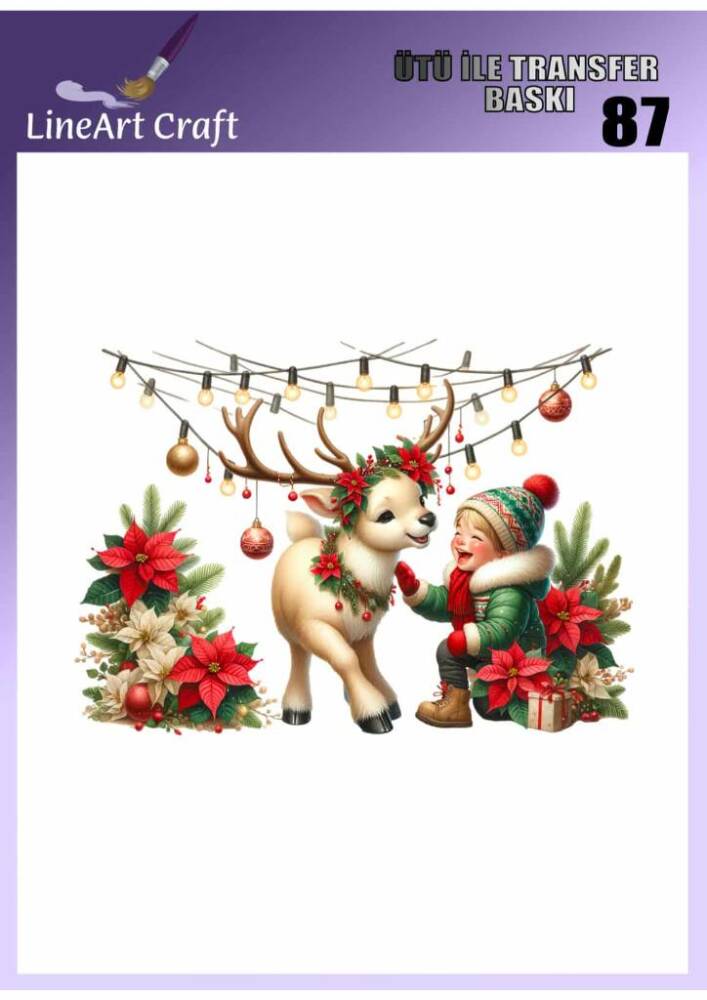 Geyik ve Çiçek Desenli Kumaş Transfer Kağıdı LNT-K087 (20x20 cm)