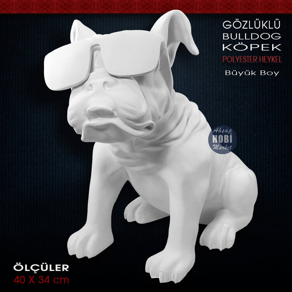 Gözlüklü Bulldog Köpek Heykeli Dev Boy (40x34 cm) Polyester