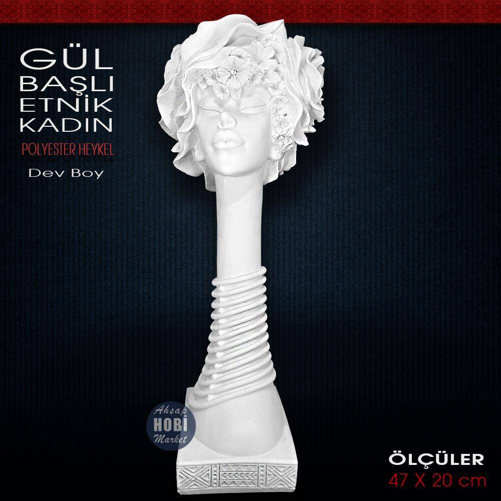 Boyanabilir Polyester Gül Kafalı Etnik Kadın Heykeli, birinci kalite polyester hammaddesinden özel makinalarda dökülmüş, etnik, klasik, otantik ve avangarde başta olmak üzere her tür dekorasyon trendine uygun olarak boyanabilecek, hatasız, mükemmel detaylı, tok görünümlü polyester aksesuar objedir. Taş tozundan veya silikon kalıba dökülerek yapılan objelerden değildir. Ağır ve tok bir görünüme sahiptir. Modası asla geçmeyecek bir tasarımdır.