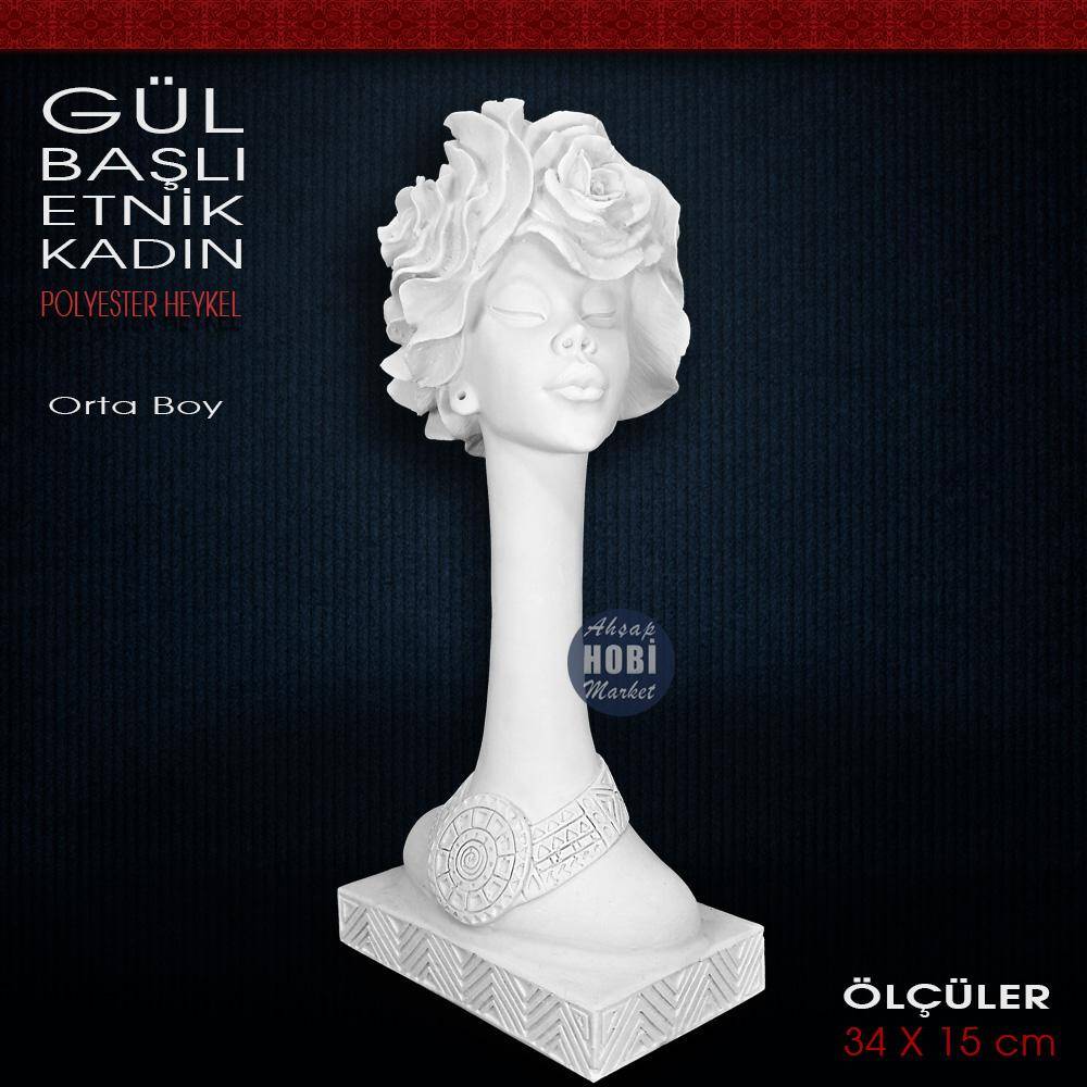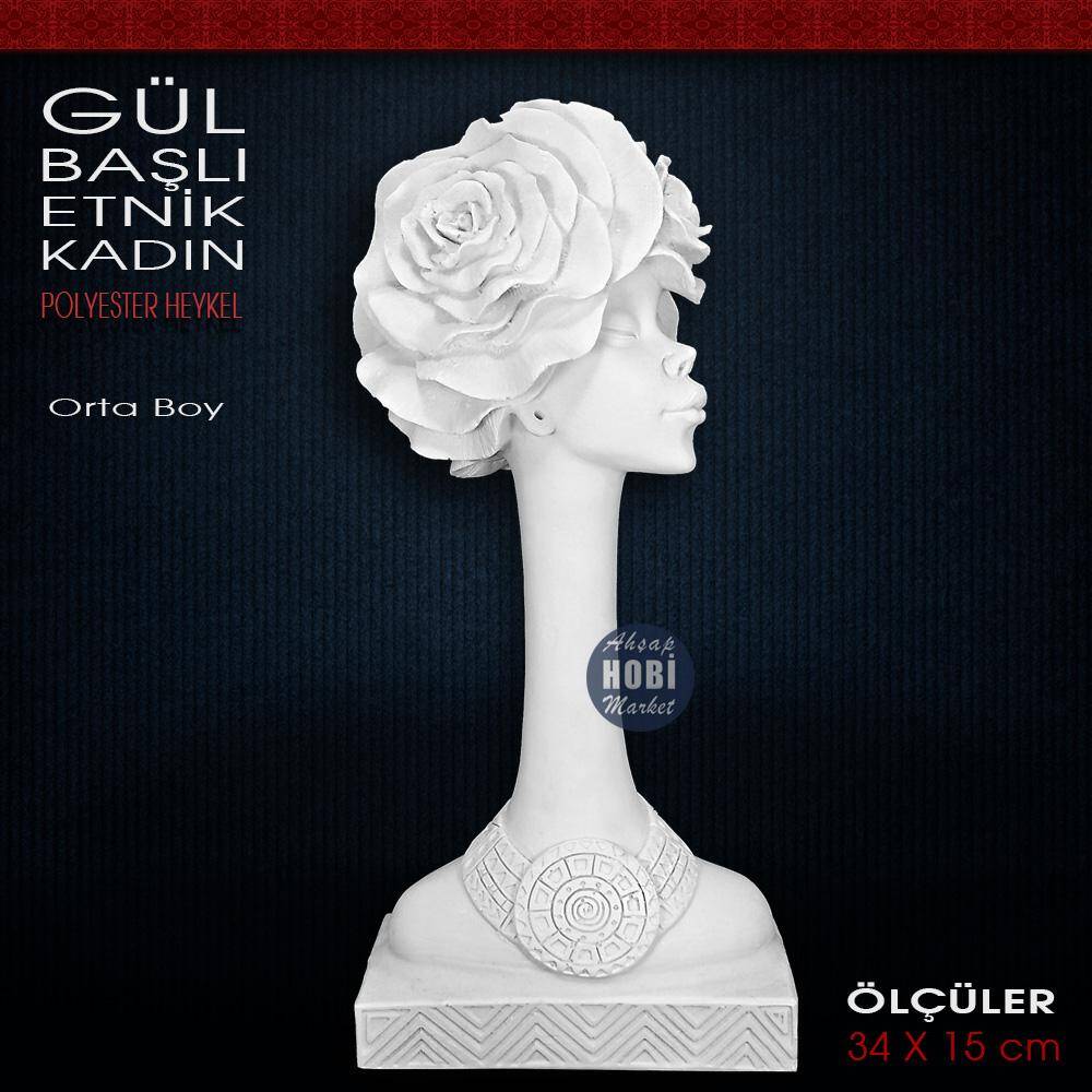 Gül Başlı Etnik Kadın Biblo Orta Boy (34x15 cm) Ham Polyester