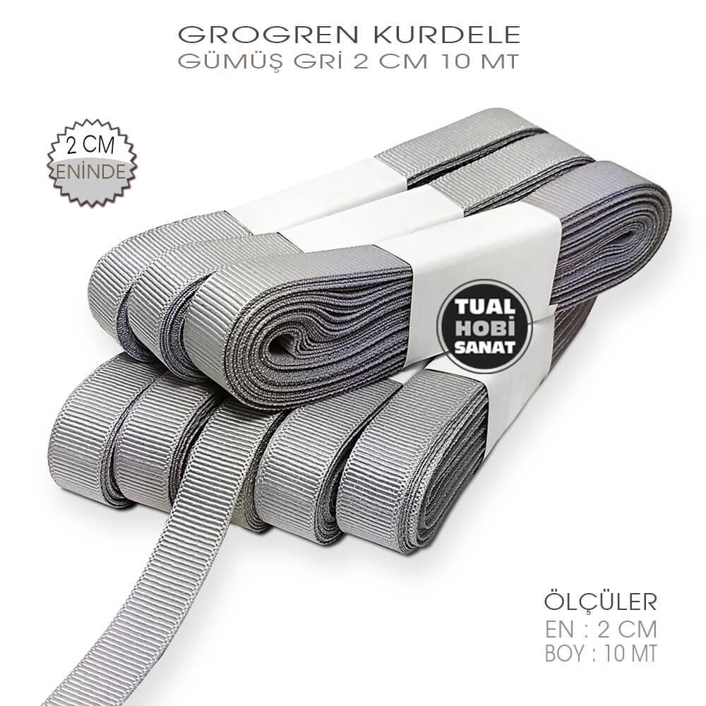 Gelince Haber VerGümüş Gri Grogren Kurdele, birinci kalite %100 polyesterden ipliklerden örgü yöntemiyle üretilmiş, 2 cm enine sahip, 10 metre uzunluğunda, kolay şekil alabilen kalın yapısıyla her türlü hobi projesinde, dikiş projesinde, toka yapımında ve hediyelik ambalajlarda kullanılan, parlak ve canlı renkli kurdelelerdir. Yerli üretim olup, düşük kaliteli ithal Çin mallarından değildir. Tüm projelerinizde güvenle kullanabileceğiniz, zamanla matlaşıp deforme olmayan, kategorisinde birinci sınıf kaliteye sahip uzun ömürlü kurdelelerdir.