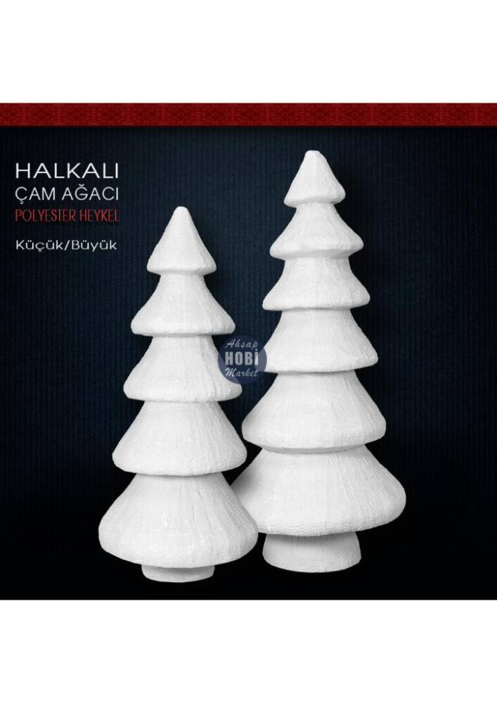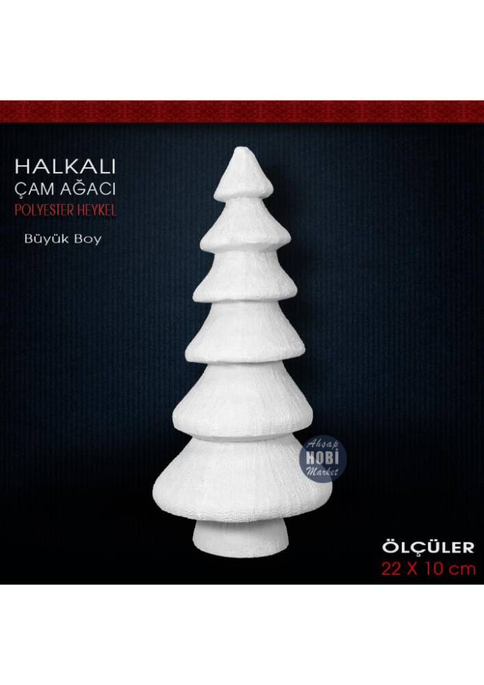 Dekoratif Polyester Halkalı Çam Ağacı Biblo, birinci kalite polyesterden özel makinalarda dökülmüş, yılbaşı dekorasyonu ve tüm kış konseptli tasarımlar başta olmak üzere her tür dekorasyon trendine uygun olarak boyanabilecek, hatasız, mükemmel detaylı, tok görünümlü polyester aksesuar objedir. Yılbaşı süslemelerinizde de kullanabileceğiniz gösterişli ve hoş görünümlü bir heykel biblodur. Taş tozundan veya silikon kalıba dökülerek yapılan objelerden değildir. Ağır ve tok bir görünüme sahiptir. Modası asla geçmeyecek bir tasarımdır.