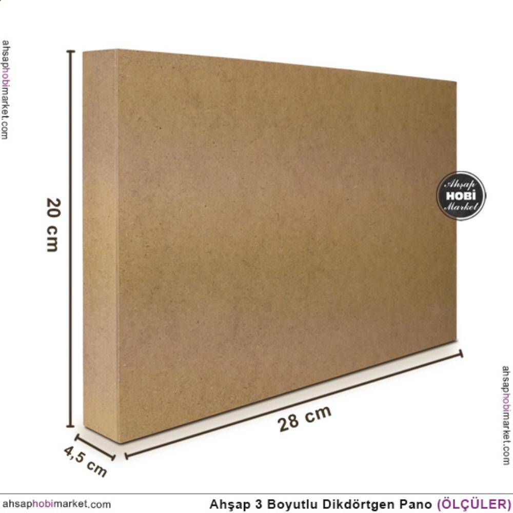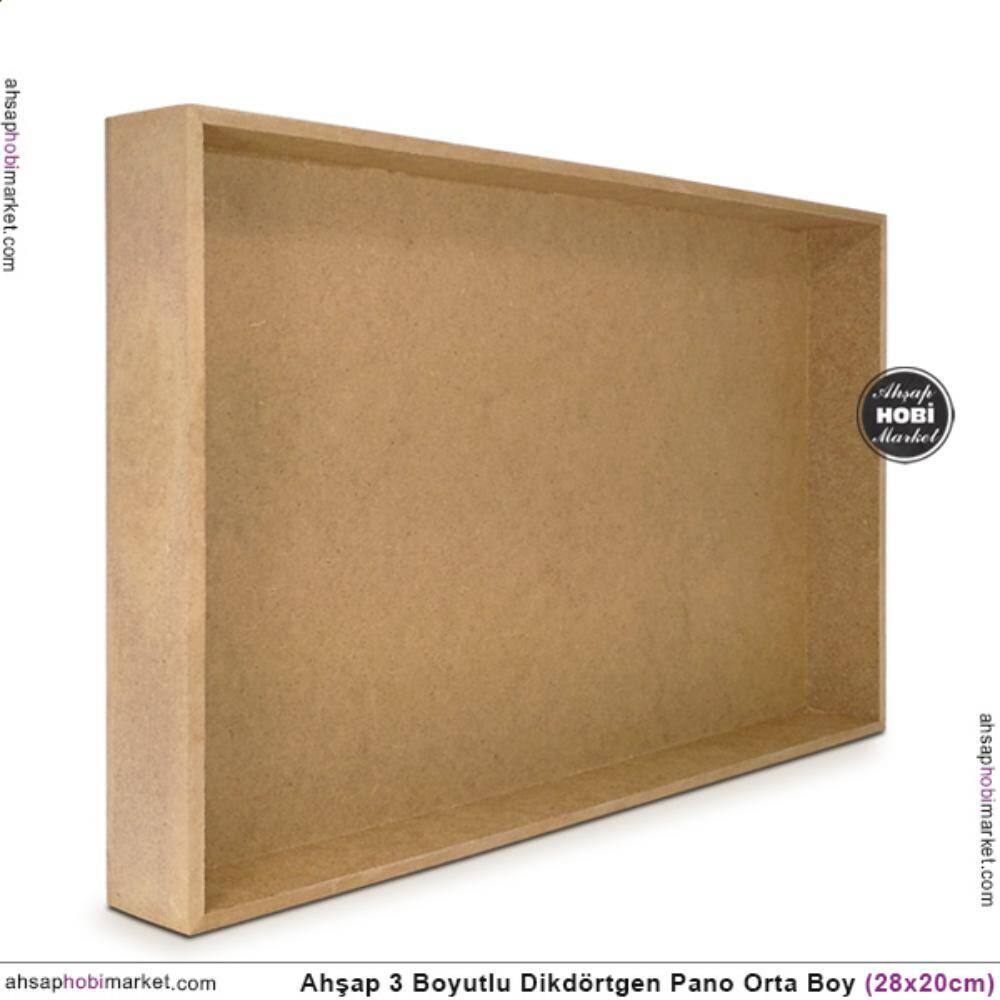 Ham Ahşap Derin Dikdörtgen Pano (28x20 cm) Orta Boy Boyutlu