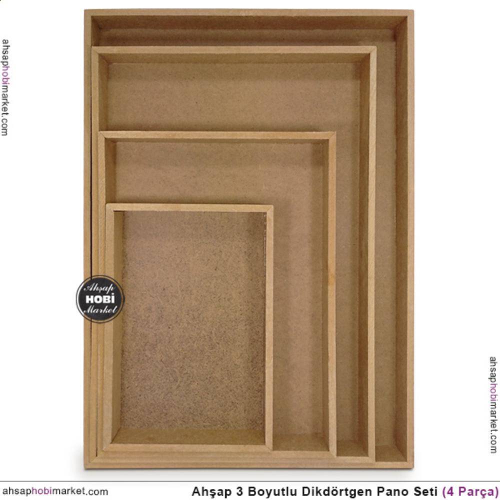 Ham Ahşap Derin Dikdörtgen Pano Seti (4 Parça)