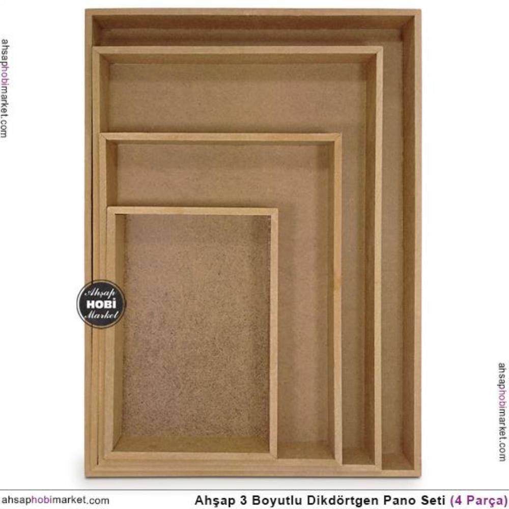 Ham Ahşap Derin Kare Pano Seti (4 Parça)