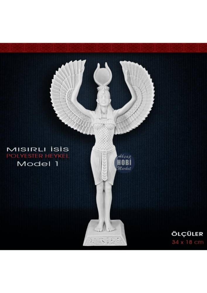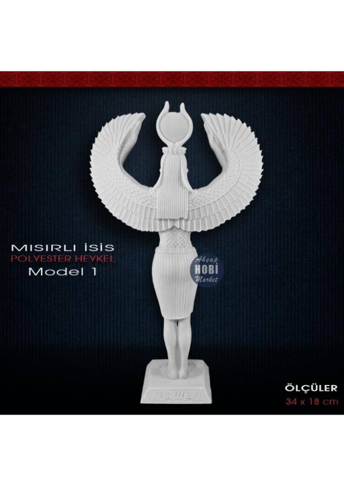 Polyester Ayakta Duran İsis Heykeli Model 1, 34 cm yüksekliğinde, 18 cm genişliğinde ve 9 cm derinliğinde 3 boyutlu bir aksesuar heykel objedir.
