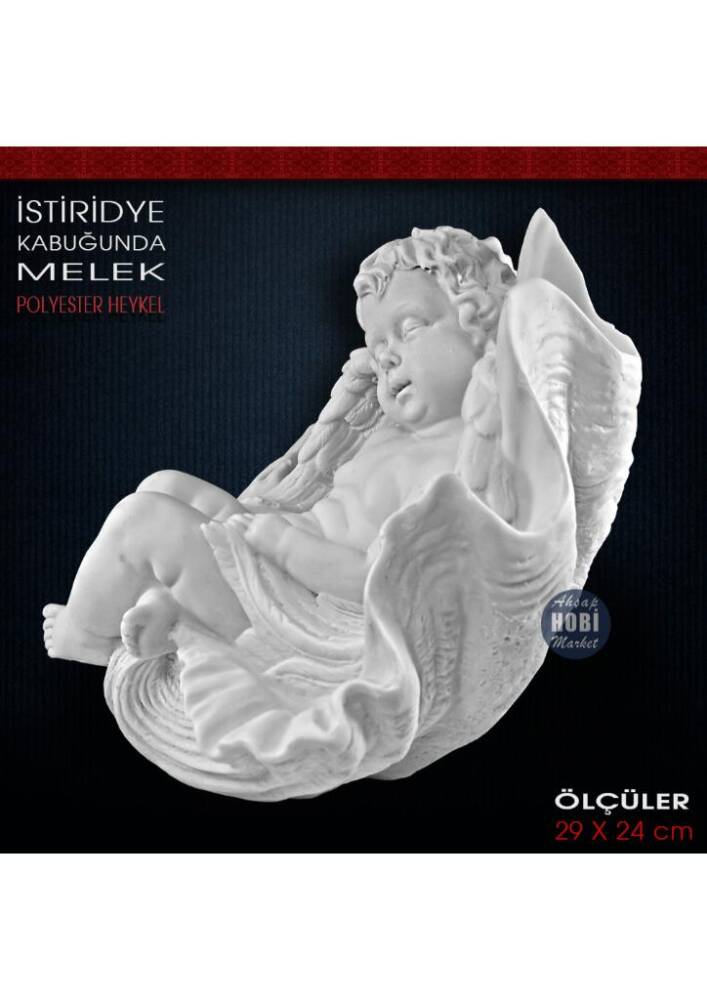 Polyester Büyük İstiridye Kabuğunda Melek Heykeli 29 cm genişliğe, 21 cm yüksekliğe, 24 cm derinliğe sahip, 3 boyutlu ağır ve tok görünümlü dekoratif heykel biblodur.