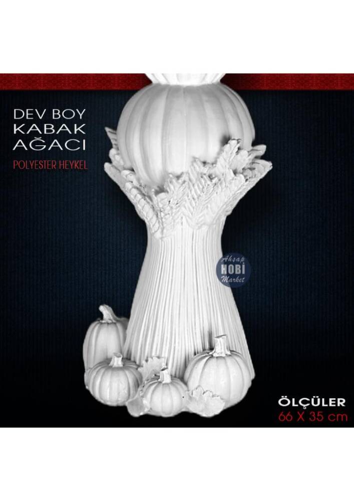 Polyester Kabak Ağacı Heykeli , birinci kalite polyester hammaddesinden özel makinalarda dökülmüş, klasik, modern, pop-art, shabby chic ve English Home başta olmak üzere her tür dekorasyon trendine uygun olarak boyanabilecek, hatasız, mükemmel detaylı, ağır, tok görünümlü polyester aksesuar objedir. Taş tozundan veya silikon kalıba dökülerek yapılan objelerden değildir. Ağır ve tok bir görünüme sahiptir ve bahçelerinizde hava şartlarından veya evcil hayvanlardan dolayı devrilmez. Modası asla geçmeyecek, farklı tasarımlı trend bir üründür.