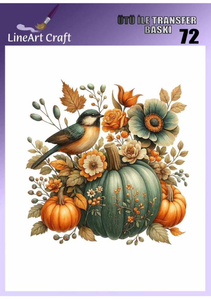Kabak ve Kuş Desenli Kumaş Transfer Kağıdı LNT-K072 (20x20 cm)