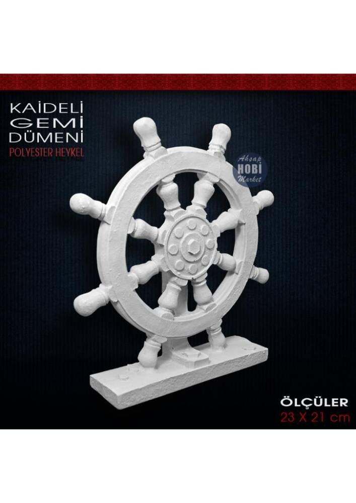 Polyester Kaideli Dümen Biblo, 23 cm yüksekliğe, 21 cm genişliğe ve 5 cm derinliğe sahip, ayakta durabilen, içi dolu polyesterden imal edilmiş, 3 boyutlu, ağır ve gösterişli bir dekoratif objedir.