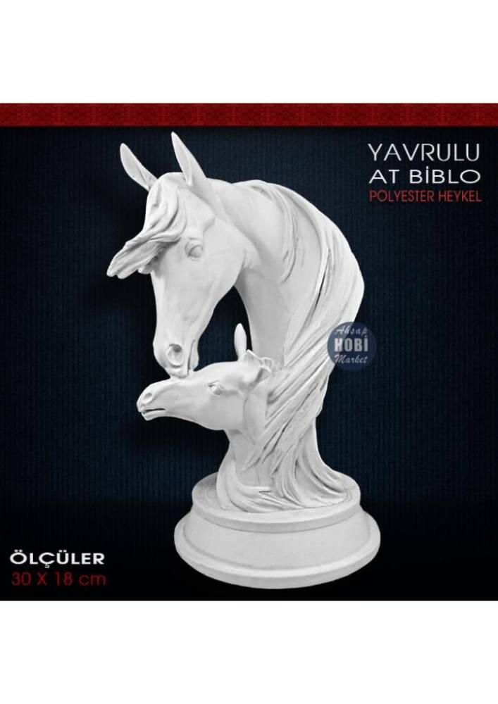 Polyester Yavrulu At Heykeli 30 cm yüksekliğinde 16 cm genişliğinde, 18 cm derinliğinde, içi dolu üç boyutlu bir aksesuar objedir.