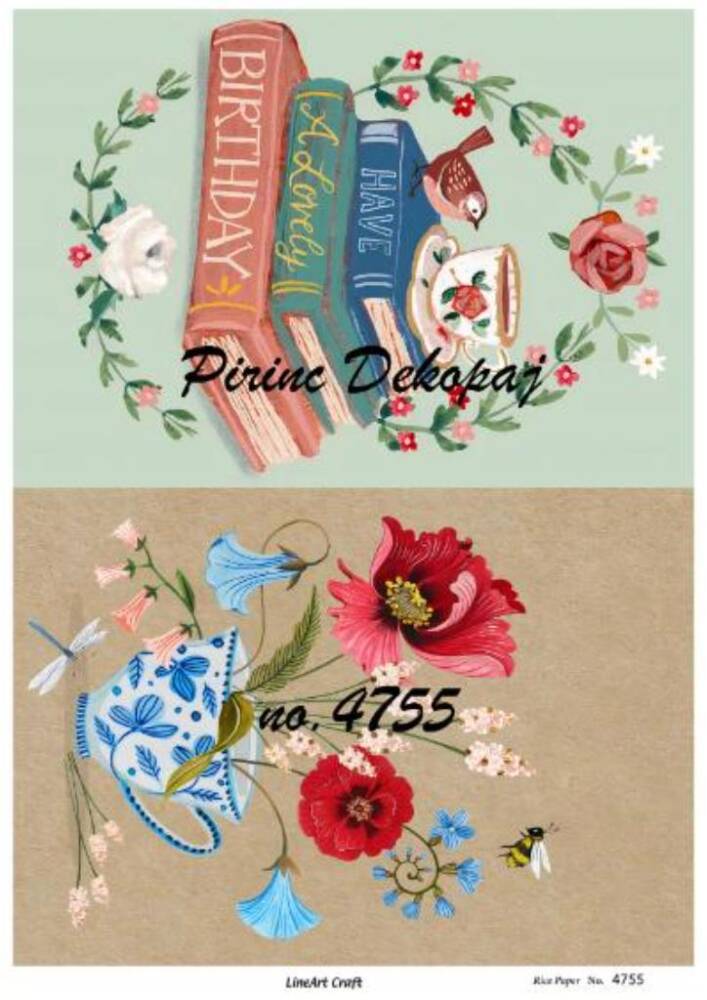LineArt Karışık Desenli Pirinç Dekopaj - Model : 4755, pirinç çeltiğinden üretilmiş, her türlü hobi projesinde kullanılabilen, dekopaj tutkalı ile yapıştırılabilen, yapıştırıldığı yüzeyde hava kabarcığı bırakmayan, birinci kalite dekopaj kağıdıdır. Pirinç Dekopajların üzerleindeki desenler, kullanıldığı ürünün görkemli ve üst düzey gözükmesini sağlamaktadır.
