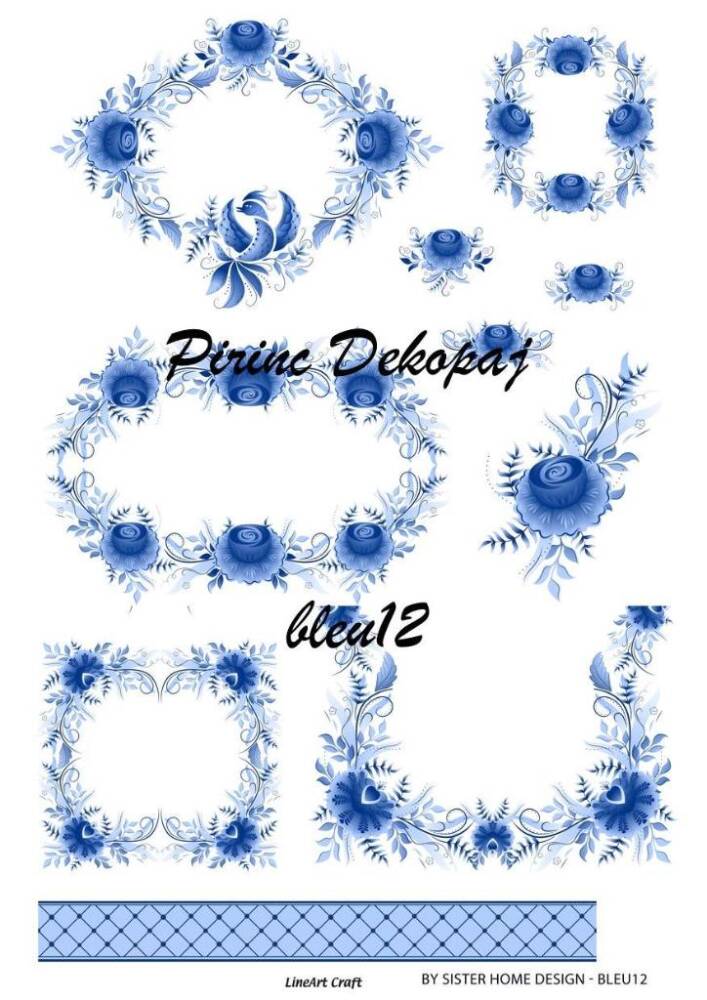 LineArt Karışık Mavi Desenli Pirinç Dekopaj - Model : BLUE20, pirinç çeltiğinden üretilmiş, her türlü hobi projesinde kullanılabilen, dekopaj tutkalı ile yapıştırılabilen, yapıştırıldığı yüzeyde hava kabarcığı bırakmayan, birinci kalite dekopaj kağıdıdır. Pirinç Dekopajların üzerleindeki desenler, kullanıldığı ürünün görkemli ve üst düzey gözükmesini sağlamaktadır.