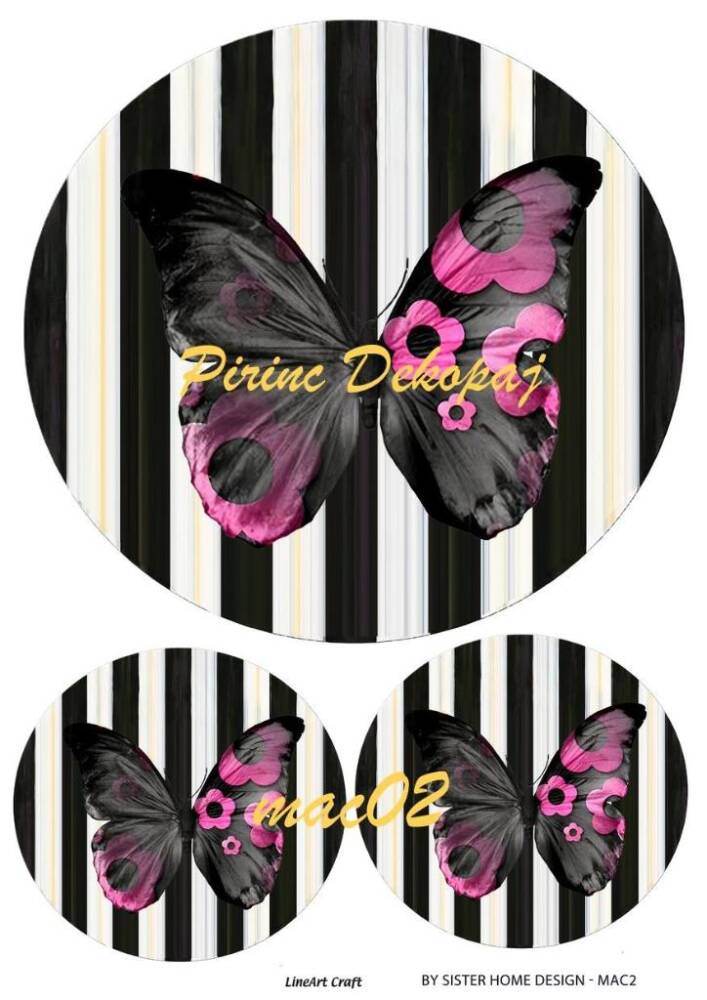 LineArt Kelebek Desenli Pirinç Dekopaj Model : mac02 , pirinç çeltiğinden üretilmiş, her türlü hobi projesinde kullanılabilen, dekopaj tutkalı ile yapıştırılabilen, yapıştırıldığı yüzeyde hava kabarcığı bırakmayan, birinci kalite dekopaj kağıdıdır. Pirinç Dekopajların üzerleindeki desenler, kullanıldığı ürünün görkemli ve üst düzey gözükmesini sağlamaktadır.