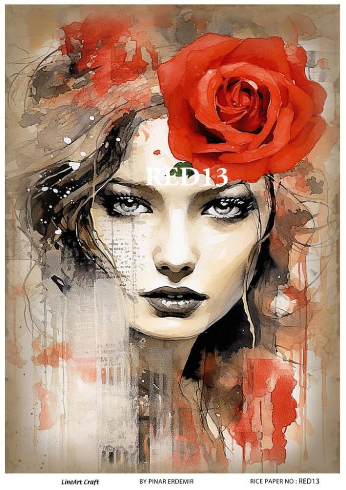 LineArt Kırmızı Gül Desenli Pirinç Dekopaj - Model : RED 13, pirinç çeltiğinden üretilmiş, her türlü hobi projesinde kullanılabilen, dekopaj tutkalı ile yapıştırılabilen, yapıştırıldığı yüzeyde hava kabarcığı bırakmayan, birinci kalite dekopaj kağıdıdır. Pirinç Dekopajların üzerleindeki desenler, kullanıldığı ürünün görkemli ve üst düzey gözükmesini sağlamaktadır.