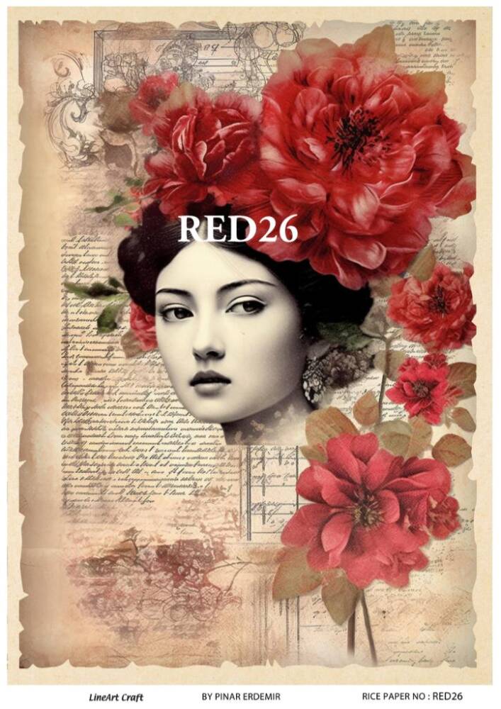 LineArt Kırmızı Gül Desenli Pirinç Dekopaj - Model : RED 26, pirinç çeltiğinden üretilmiş, her türlü hobi projesinde kullanılabilen, dekopaj tutkalı ile yapıştırılabilen, yapıştırıldığı yüzeyde hava kabarcığı bırakmayan, birinci kalite dekopaj kağıdıdır. Pirinç Dekopajların üzerleindeki desenler, kullanıldığı ürünün görkemli ve üst düzey gözükmesini sağlamaktadır.