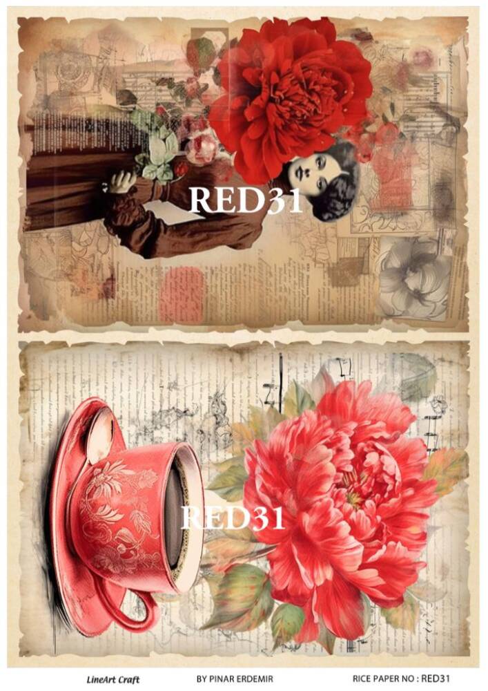 LineArt Kırmızı Gül Desenli Pirinç Dekopaj - Model : RED 31, pirinç çeltiğinden üretilmiş, her türlü hobi projesinde kullanılabilen, dekopaj tutkalı ile yapıştırılabilen, yapıştırıldığı yüzeyde hava kabarcığı bırakmayan, birinci kalite dekopaj kağıdıdır. Pirinç Dekopajların üzerleindeki desenler, kullanıldığı ürünün görkemli ve üst düzey gözükmesini sağlamaktadır.