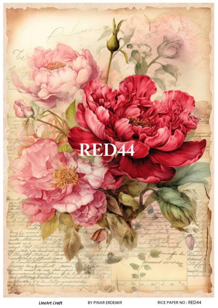 LineArt Kırmızı Gül Desenli Pirinç Dekopaj - Model : RED 44, pirinç çeltiğinden üretilmiş, her türlü hobi projesinde kullanılabilen, dekopaj tutkalı ile yapıştırılabilen, yapıştırıldığı yüzeyde hava kabarcığı bırakmayan, birinci kalite dekopaj kağıdıdır. Pirinç Dekopajların üzerleindeki desenler, kullanıldığı ürünün görkemli ve üst düzey gözükmesini sağlamaktadır.