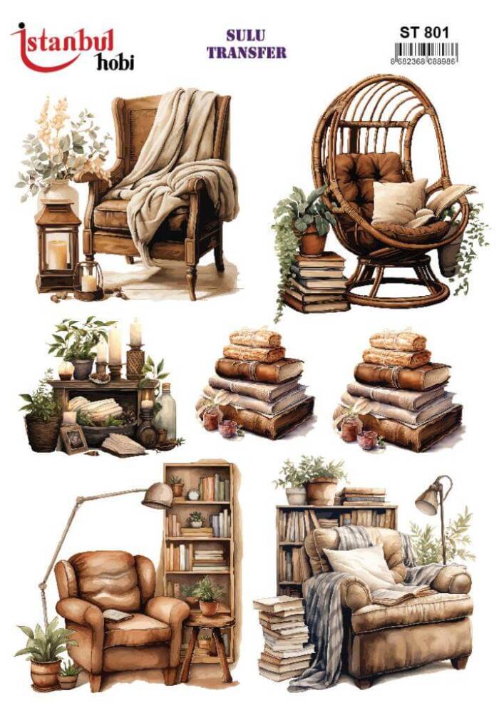 Kitap Desenli Sulu Transfer Kağıdı STI-801