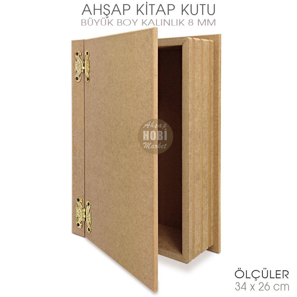 Gelince Haber VerAhşap Büyük Boy Kitap Kutu, 8mm birinci kalite mdfden üretilmiş, ciltli kitap görünümlü, kapağı 2 adet antik kelebek menteşe ile tutturulmuş, birinci sınıf işçilikle üretilmiş, hem dekoratif, hemde işlevsel olarak kullanılabilen çok amaçlı bir kutudur. Lazer kesim ince kutulardan ve küçük zayıf menteşeli taklitlerinden olmadığı için uzun yıllarca kullanılabilecek bir üründür. Ahşap Büyük Boy Kitap Kutu, her türlü hobi ve ticari projelerinizde kullanabileceğiniz, dekoratif bir ürün olmasının yanısıra gizli kasa, değerli evrak ve hatıra eşyalarının saklandığı kutu, tesbih kutusu, hediyelik kitap kutusu, fatura kutusu ve takı kutusu gibi birçok amaçla kullanılabilir.