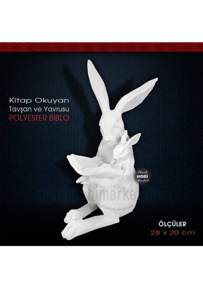 Kitap Okuyan Tavşanlar Biblo (25x17 cm) Ham Polyester