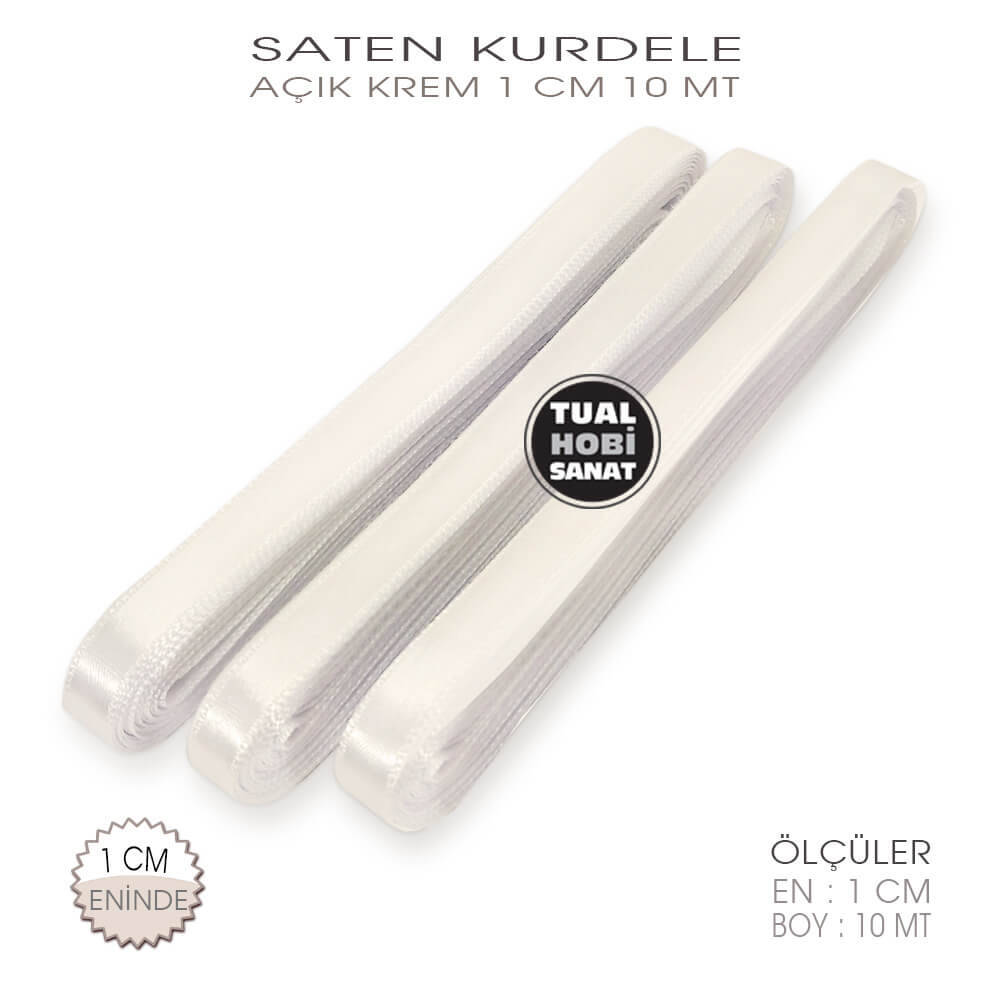 Gelince Haber VerAçık Krem Saten Kurdele, %100 birinci sınıf polyesterden iplikten imal edilmiş, parlak ve canlı renklere sahip, 1 cm eninde ve 10 metre uzunluğunda, her türlü hobi ve dikiş projelerinde kullanabileceğiniz kurdelelerdir. Yerli üretim olup, düşük kaliteli ithal Çin mallarından değildir. Tüm projelerinizde güvenle kullanabileceğiniz, pürüzsüz yüzeyli, zamanla matlaşıp deforme olmayan, kategorisinde birinci sınıf kaliteye sahip uzun ömürlü kurdelelerdir.