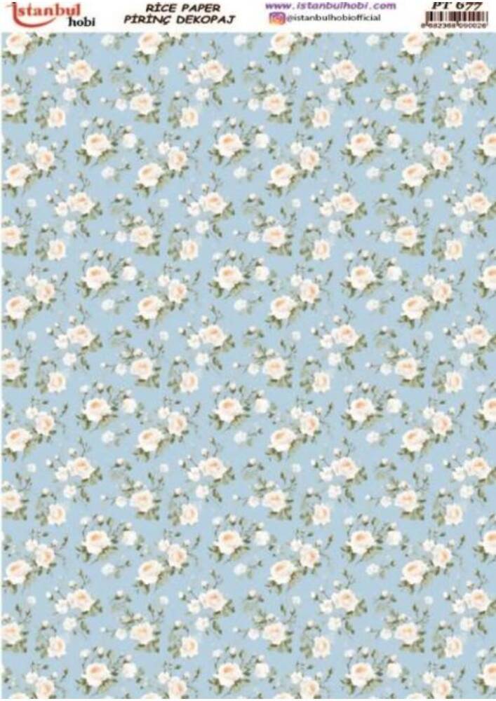 1) Pirinç Desenli Dekopaj kağıdı yapıştıracağınız yüzey; pürüzsüz, temiz, yağ ve kirden arındırılmış, kuru olmalıdır.