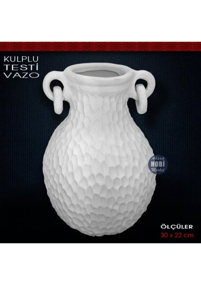 Kulplu Testi Vazo Büyük Boy (30x22 cm) Ham Polyester