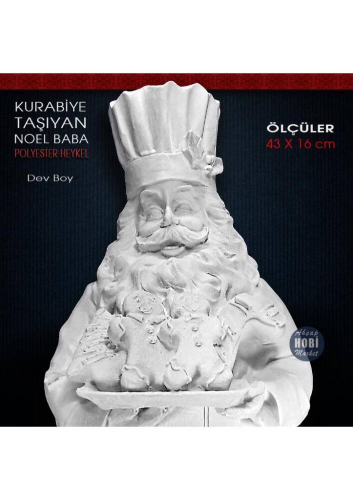 Kurabiye Taşıyan Noel Baba Heykeli (43x16 cm) Ham Polyester