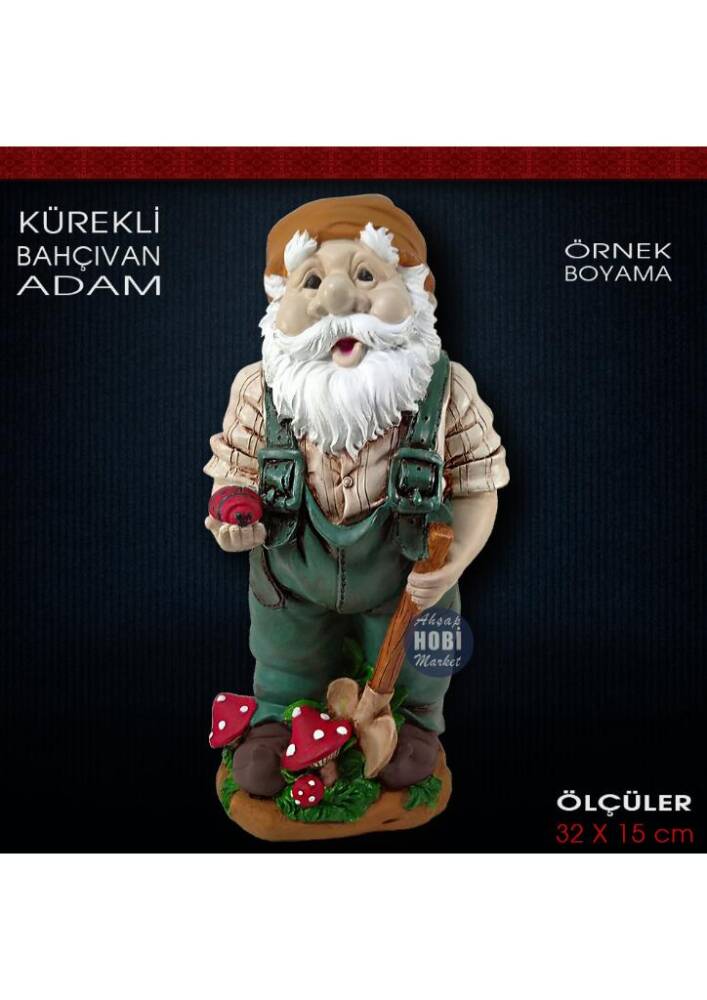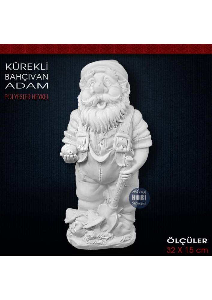 Kürekli Bahçıvan Adam Heykeli (32x15 cm) Ham Polyester